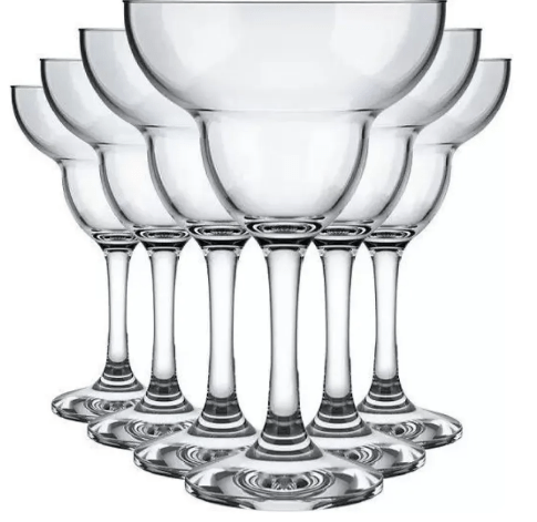O conjunto conta com 06 Taças para Margarita em vidro e possui 270 ml.