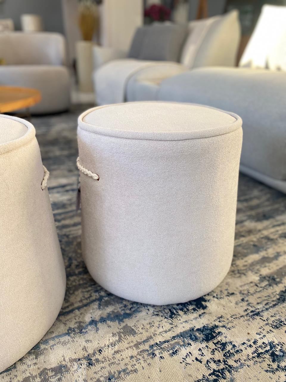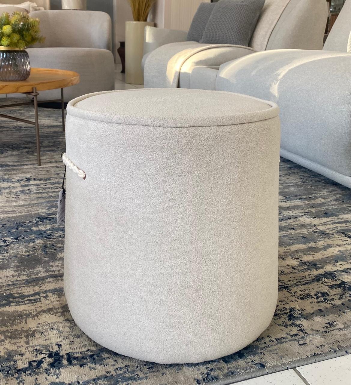 O Puff Dallas daTutt Ambientes une estilo contemporâneo e funcionalidade para compor ambientes com elegância e praticidade. Seu design cilíndrico, com acabamento em tecido bouclê na cor off-white e alça lateral em corda náutica, confere charme e leveza ao espaço, além de facilitar o manuseio e a mobilidade.
