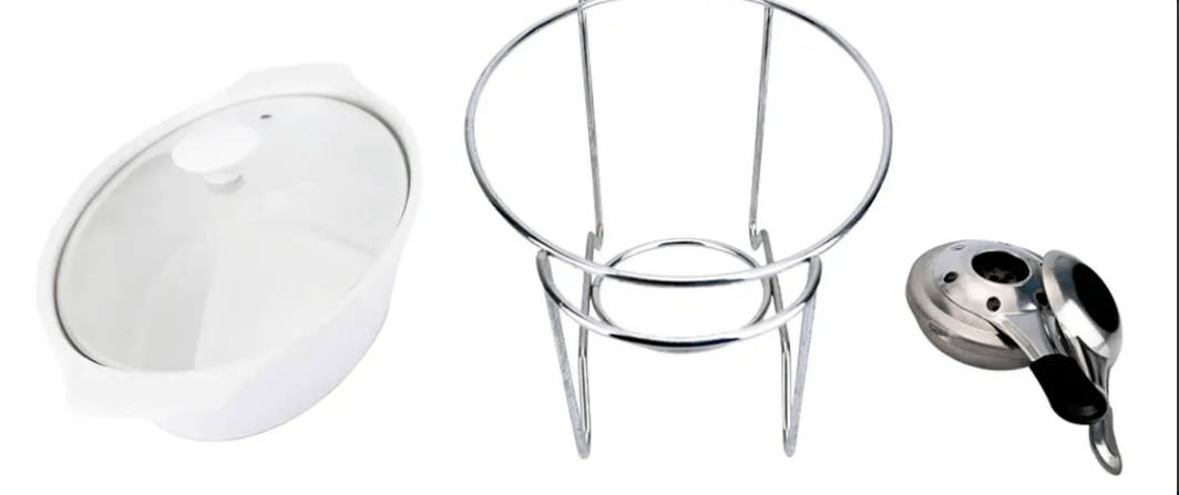 Ele é formado por uma travessa de porcelana feita de material refratário, o que significa que pode ser levada ao forno SEM A TAMPA, tornando a preparação de pratos quentes ainda mais fácil. Além disso, ele conta com uma tampa de vidro temperado, que permite visualizar os alimentos sem precisar abrir. O queimador possui uma tampa que pode ser aberta ou fechada, permitindo regular a intensidade do fogo. Assim, você pode controlar a temperatura dos alimentos de acordo com suas preferências. É muito prático, pois conta com um suporte em aço inox resistente, que garante estabilidade e segurança durante o uso.